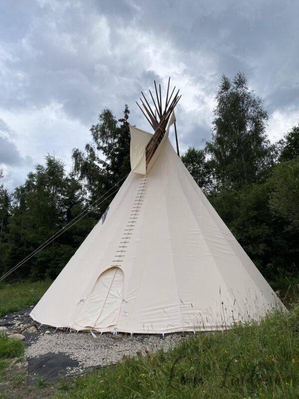 Ubytování: možnost přespání na matracích v Teepee, kapacita 10 míst. (Nutno mít vlastní spacák nebo přikrývku.) Sociální zázemí v penzionu v těsné blízkosti (cca 50m).